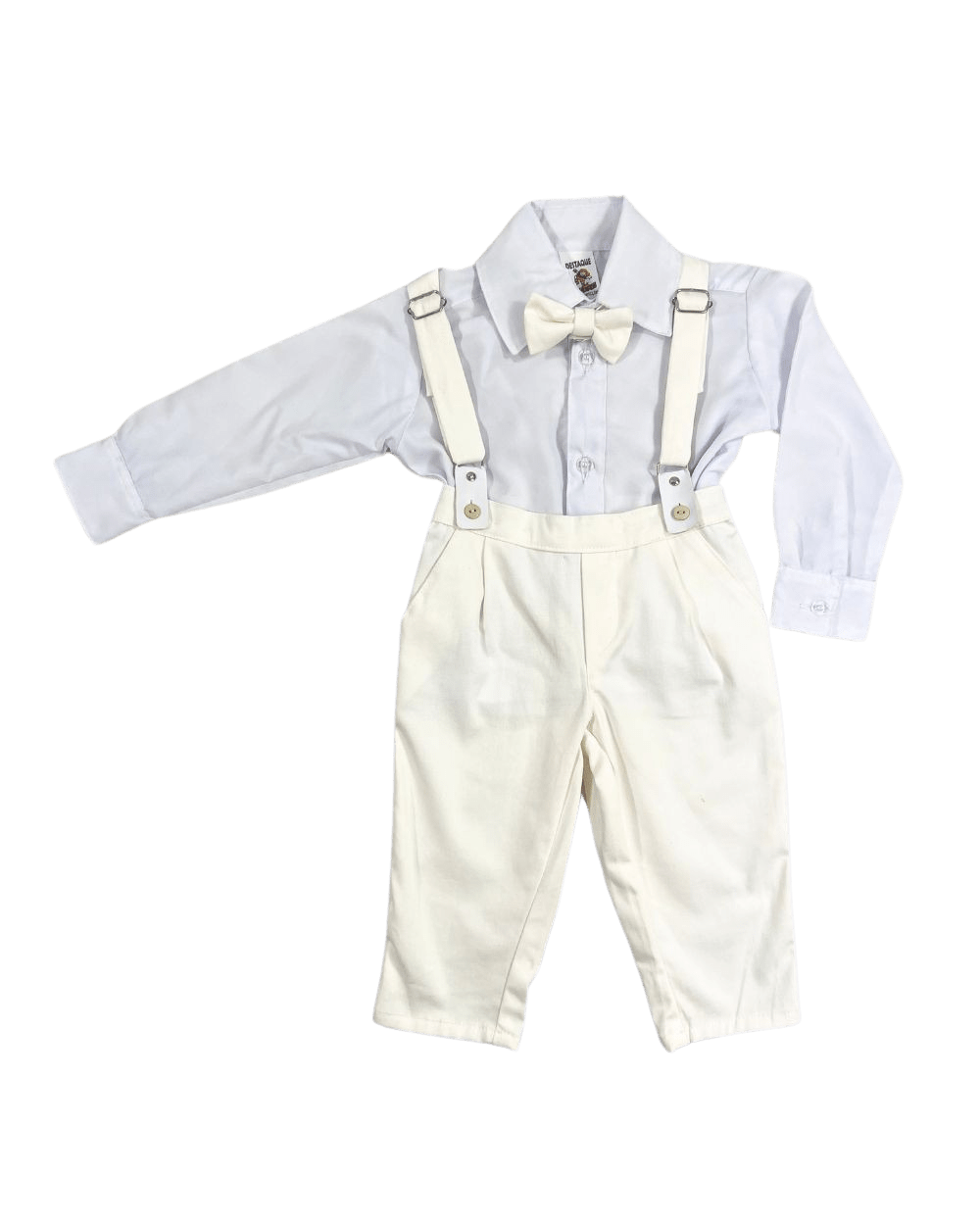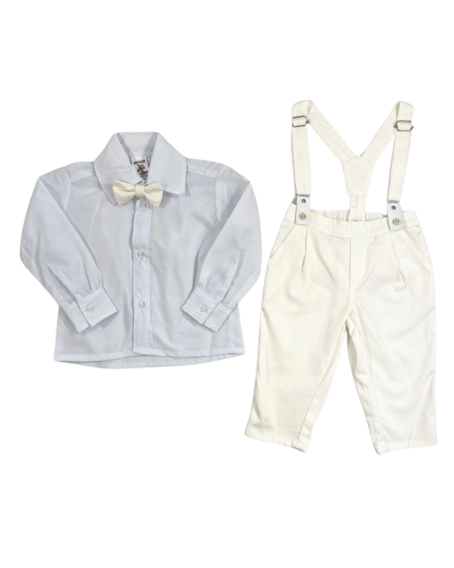Conjunto masculino Destaque, Longo de suspensório, calça com bolso frontal e o de trás é fake, suspensório removível por botões, gravata borboleta com fecho em velcro sendo assim é bem mais prático na hora de vestir.
