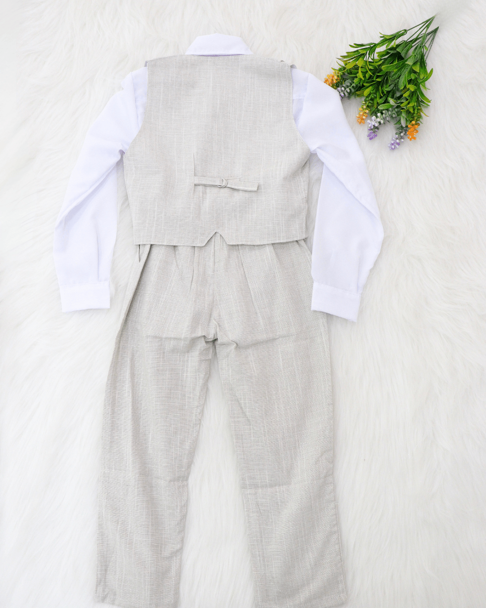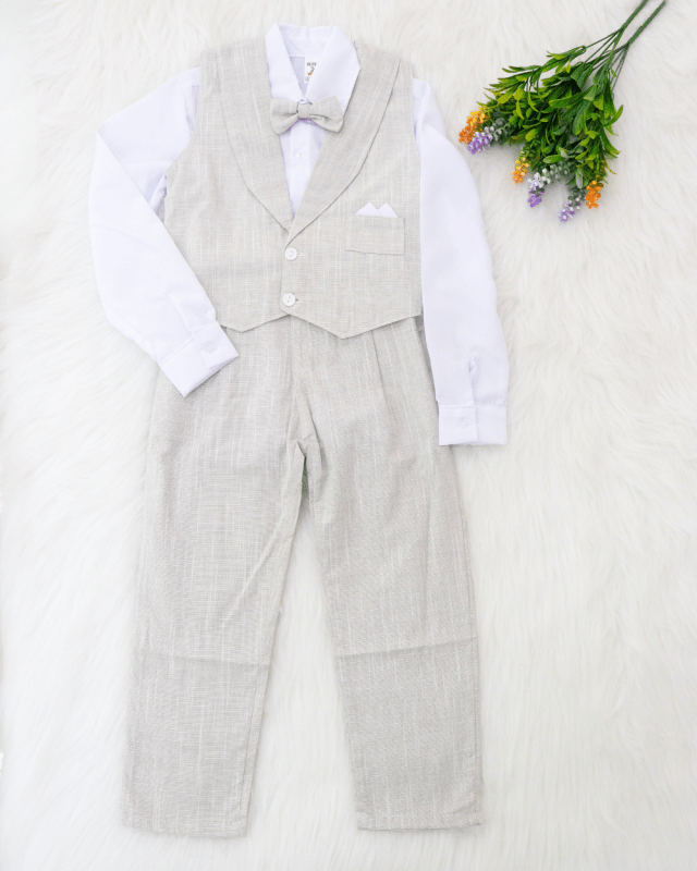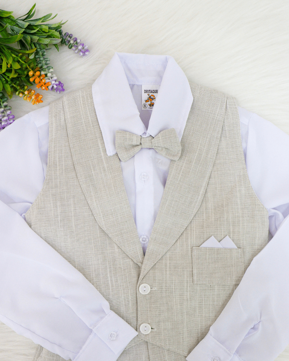 CONJUNTO LONGO,CAMISA E CALÇA COM SUSPENSÓRIO,GRAVATA BORBOLETA.