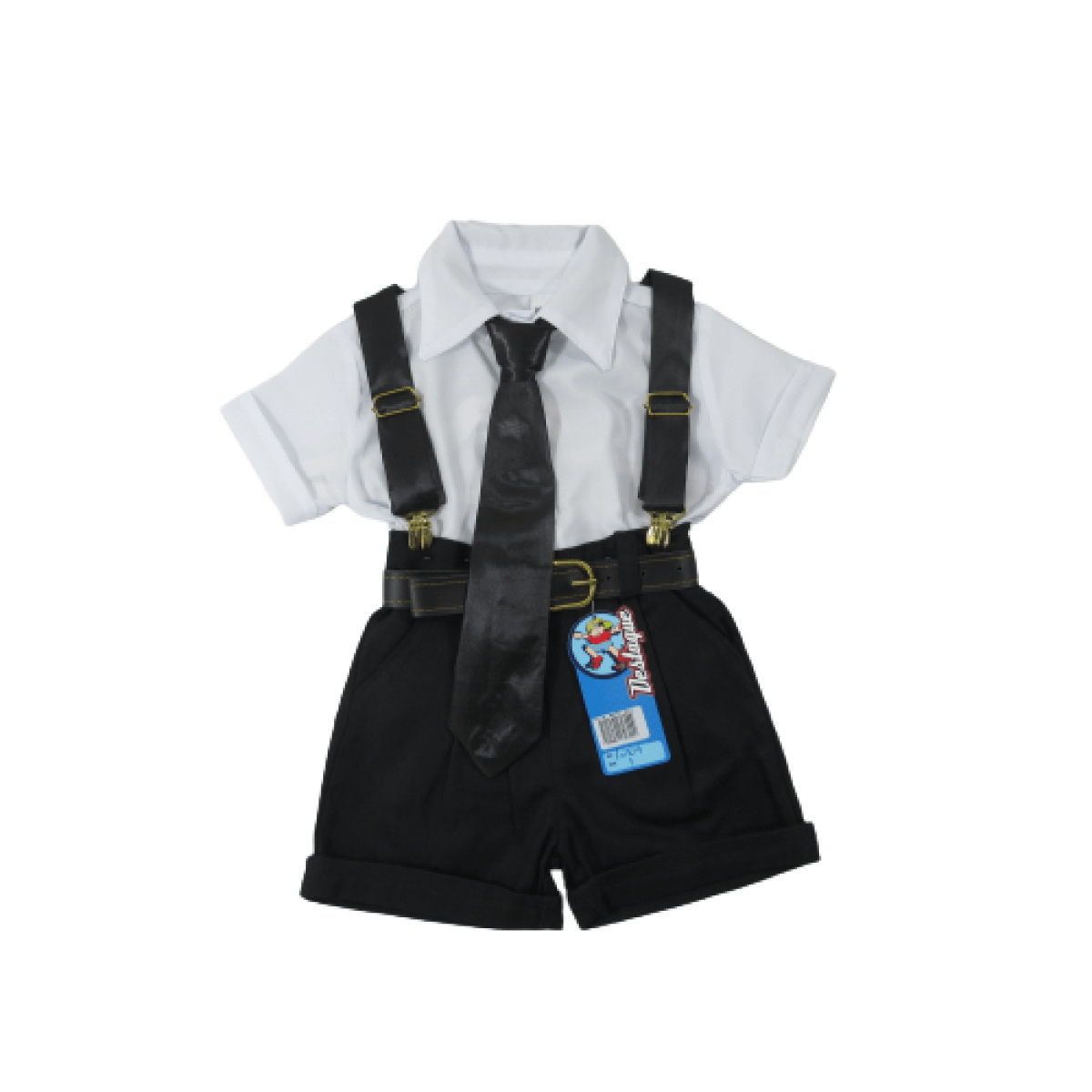 CONJUNTO CURTO ,CAMISA,BERMUDA COM CINTO E SUSPENSÓRIO,GRAVATA .