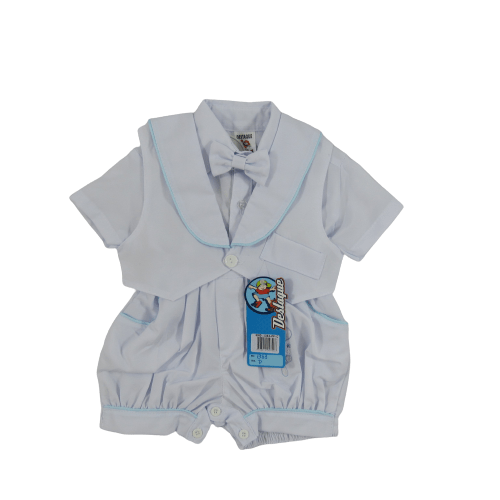 CONJUNTO CURTO, CAMISA E BERMUDA COLETE, GRAVATA BORBOLETA.