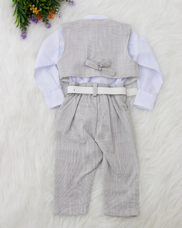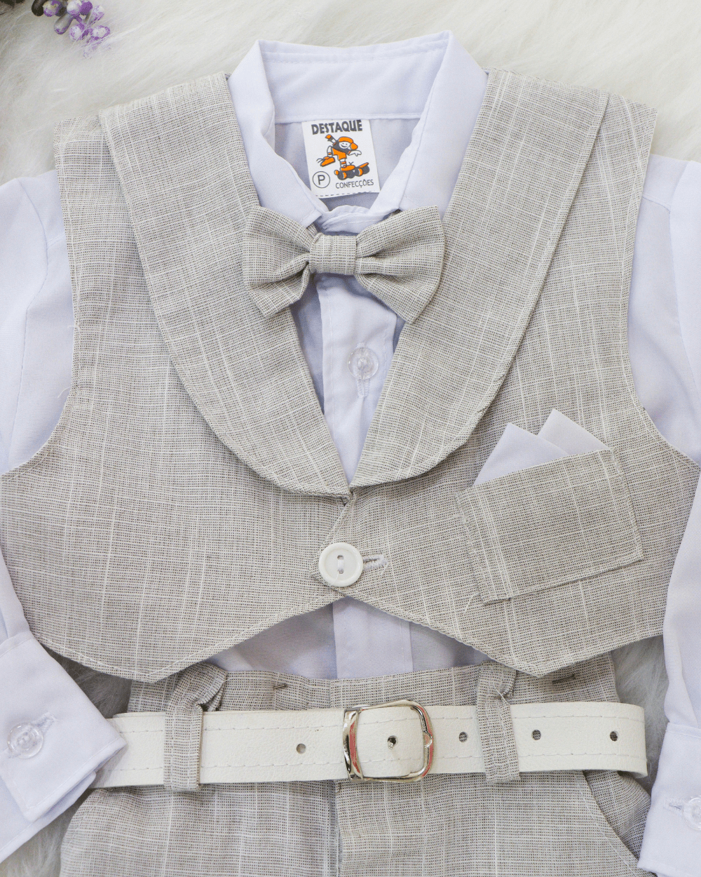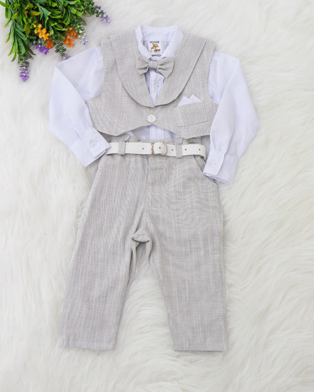 CONJUNTO LONGO ,CAMISA MANGA LONGA,GRAVATA BORBOLETA,COLETE, CALÇA COM CINTO .