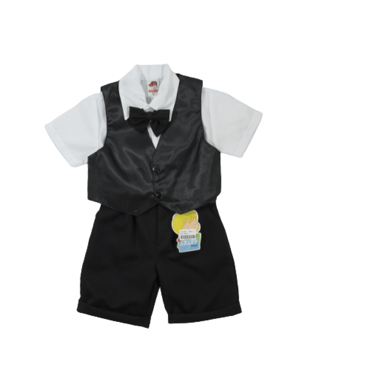 CONJUNTO CURTO,CAMISA E BERMUDA COM CINTO,GRAVATA BORBOLETA,COLETE.