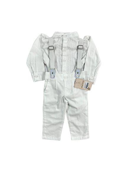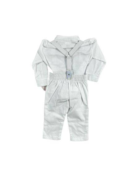 Conjunto social longo infantil branco. Composto por: 1 body social manga longa,1calça lisa branca , com bolsos, fecho botão. Cós com regulagem ,elástico traseiro ajustável.