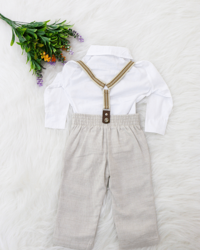 Conjunto longo, Leley, Camisa manga longa, Calça e suspensório. Conjunto perfeito para ocasiões mega especiais.