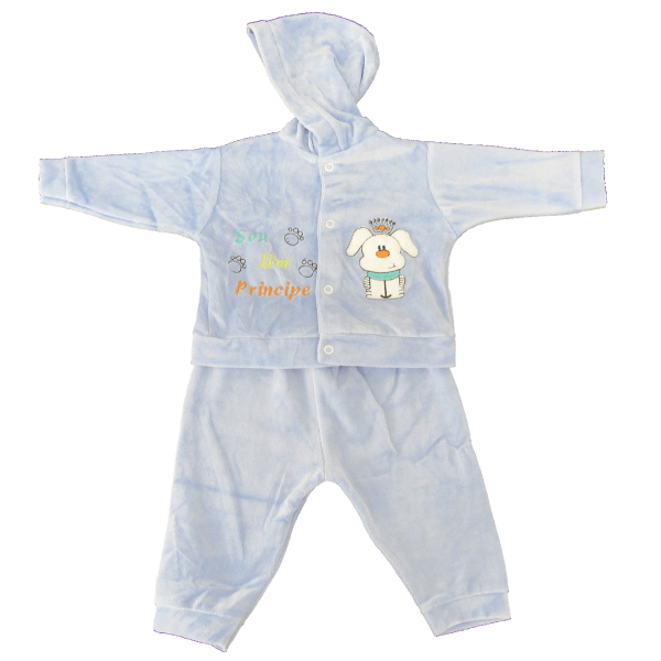 CASACO MANGA LOGA E CALÇA PLUSH, COM ESTAMPAS BORDADA .DISPONÍVEL NAS CORES:AZUL CLARO/AZUL ESCURO