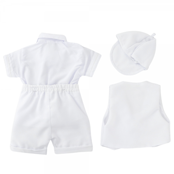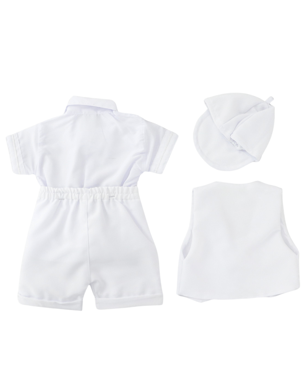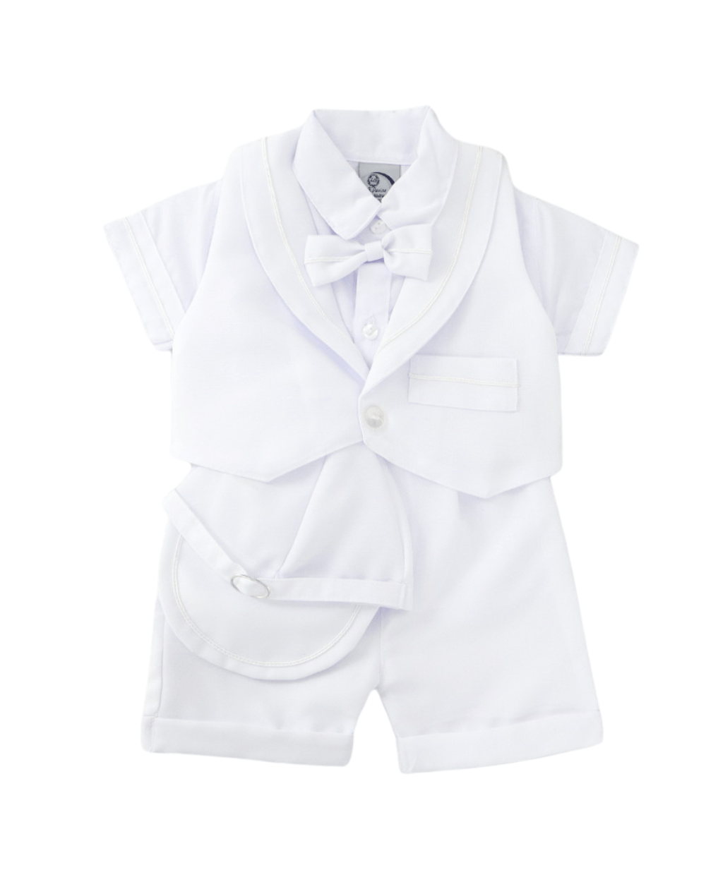 CONJUNTO CURTO,CAMISA E BERMUDA ,COLETE,CINTO,GRAVATA BORBOLETA,COM BONÉ.