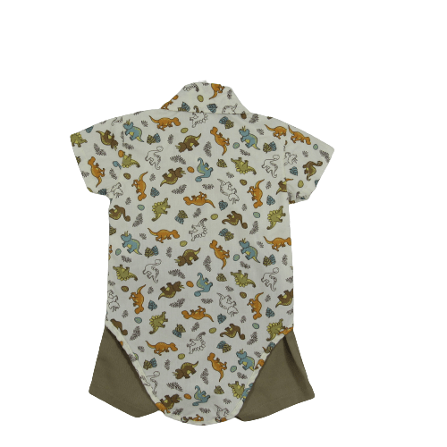 Conjunto social curto infantil. Composto por: 1 body social manga curta estampado .1 bermuda cor marfim com bolsos. Cós com elástico traseiro. Barra acabamento simples.