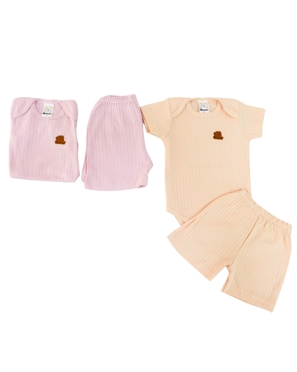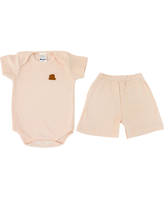 Conjunto de duas peças petutinha, modelo canelado, vem com um body manga curta e uma bermuda cintura elástica, tecido molinho para maior conforto.