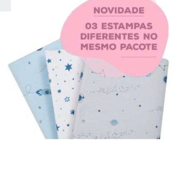 Kit cueiro acabamento estampado. Flanelado dos dois lados. Cor: Branco com Azul