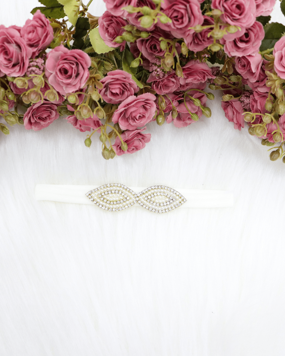 Faixa de cabelo para bebê, com tecido meia calça macio e leve, Laço único com aplicação de pérolas sintéticas e strass . Não aperta a cabecinha do bebê, feita com todo cuidado e carinho.