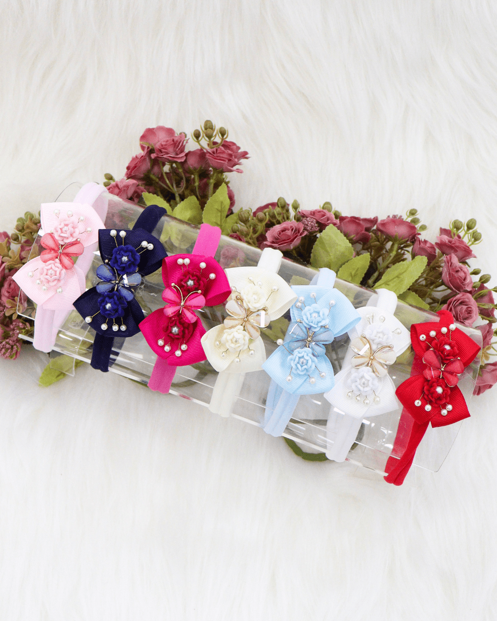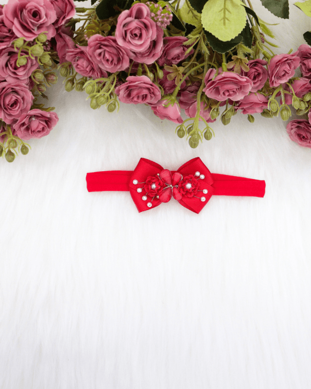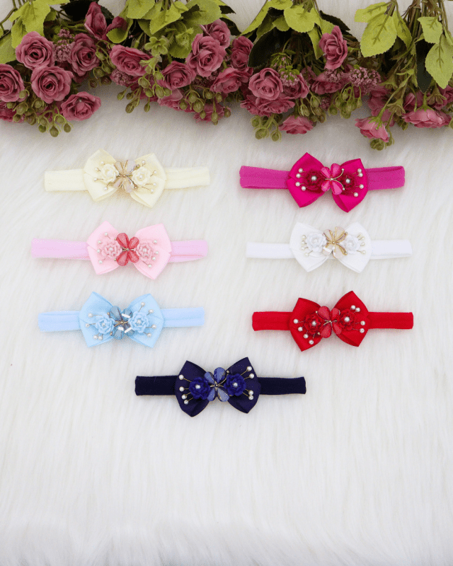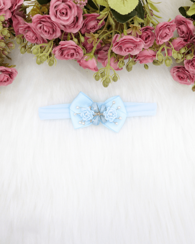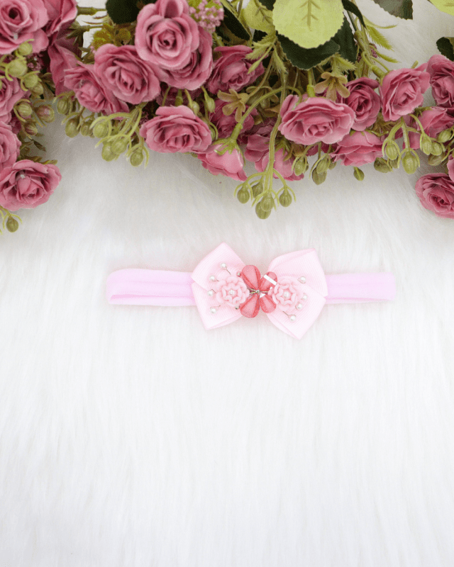 Faixa Laços e Babados de meia para maior conforto não apertando a cabecinha da neném com lacinho em organza e pérolas super delicada.