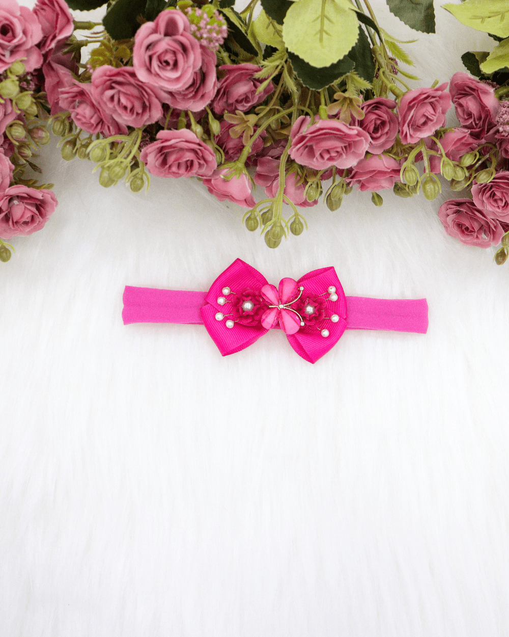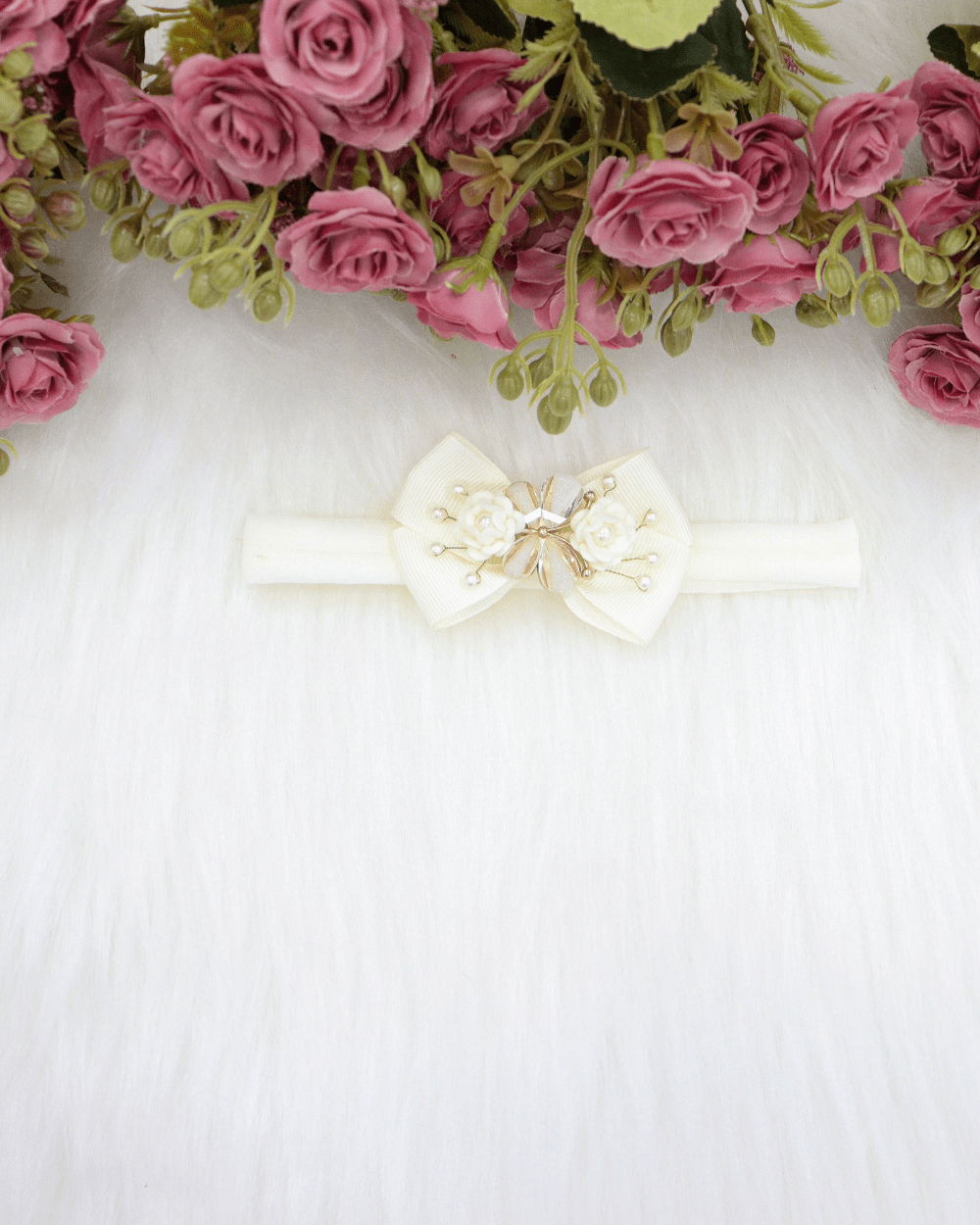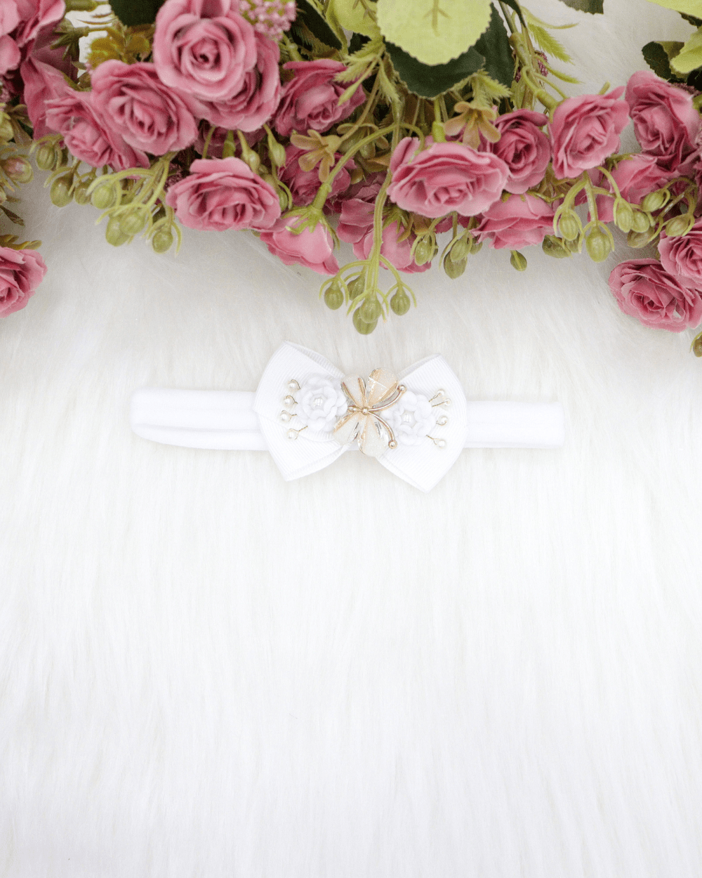 Faixa Laços e Babados de meia para maior conforto não apertando a cabecinha da neném com lacinho em organza e pérolas super delicada.