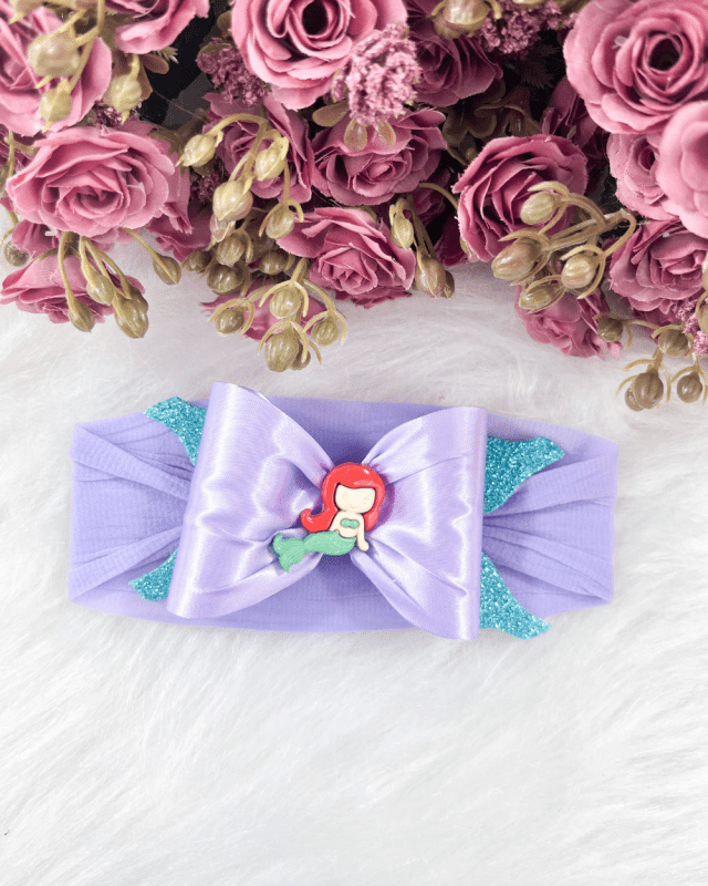 Faixa lika loka tematica Ariel/Pequena Sereia, fica simplesmente linda na bebê veste até 1 aninho feita em meia e tem um laço que lembra a personagem.