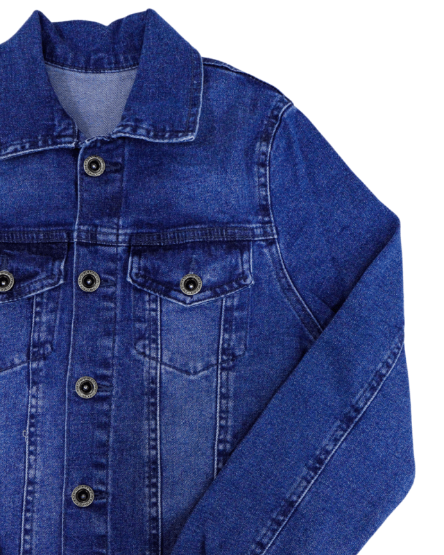 Jaqueta jeans masculina manga longa ,com bolsos frontal com botões , lavagem jeans escuro. costuras em acabamento simples.