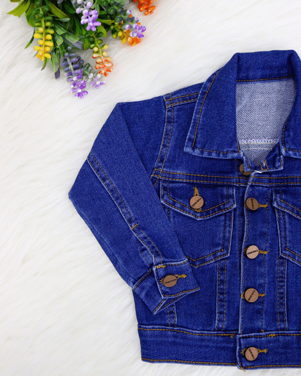 Jaqueta jeans masculina manga longa ,com bolsos frontal com botões , lavagem jeans escuro. costuras em acabamento simples.