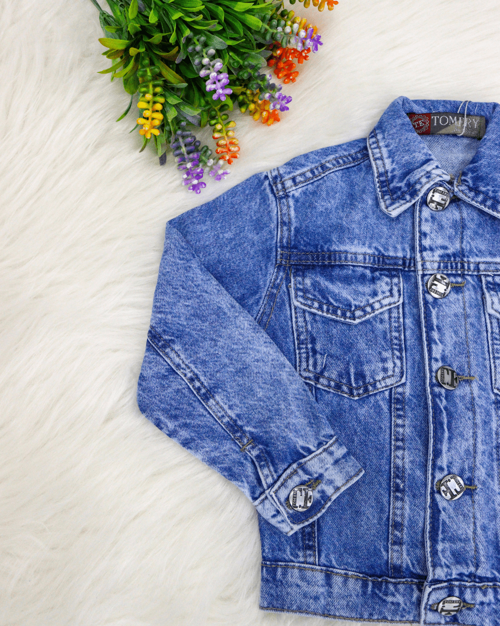 Jaqueta jeans masculina manga longa ,com bolsos frontal com botões , lavagem jeans claro. costuras em acabamento simples.