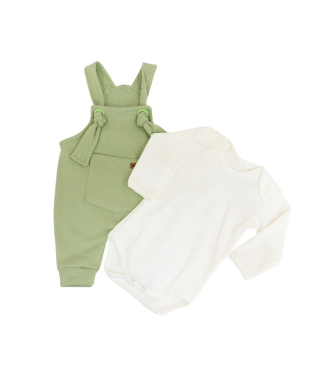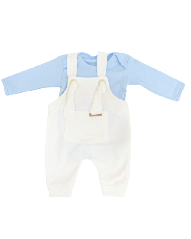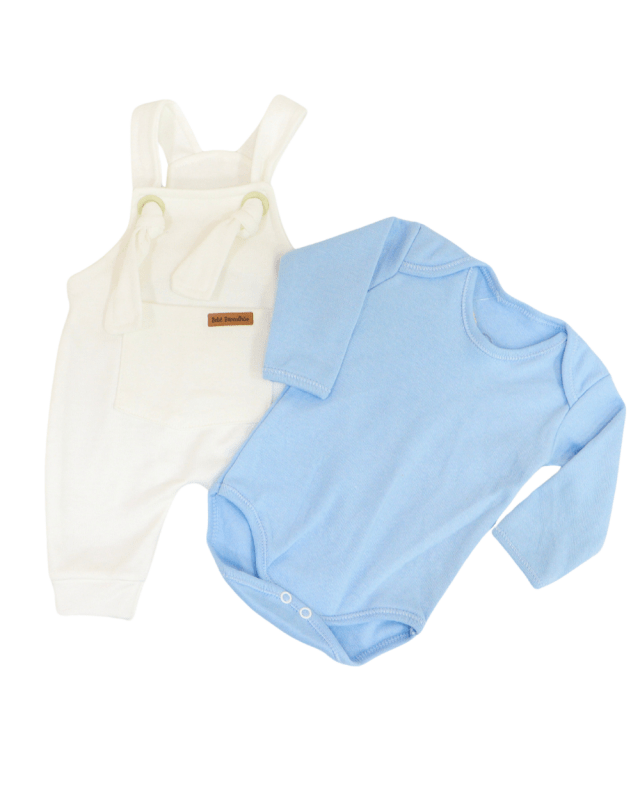 Jardineira longa bebê brincalhão + body em suedine modelo sem pé, bordado, forrado garantindo o conforto e estilo ao bebê, fechamento por botões.