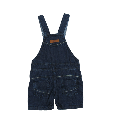Jardineira jeans curta masculina, com bolso frontal fake e traseiros, passante para cinto na cintura, fechamento com abotoamento lateral ,alça com regulagem , barra acabamento simples.