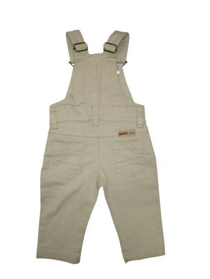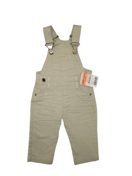 Jardineira de sarja, cor areia, longa masculina, com bolso frontal e traseiros, passante para cinto na cintura, fechamento com abotoamento lateral ,alça com regulagem , barra com acabamento simples.