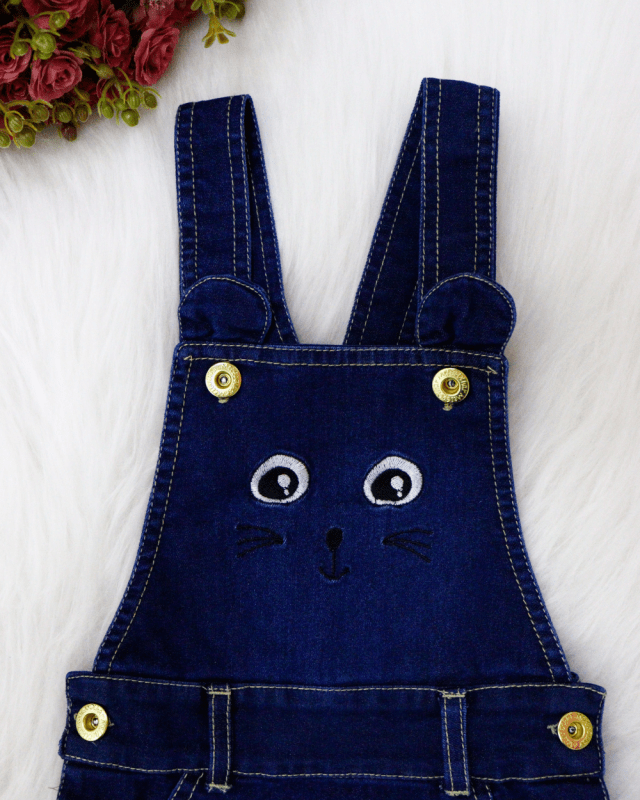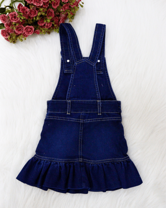 Jardineira Jeans feminina Petit Tathi, Modelo Saia, lavagem escura com bordado em seu peito para deixar ainda mais delicada!