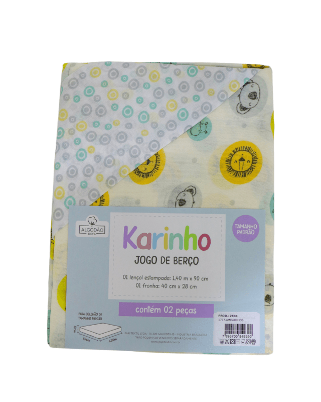 Jogo de berço Karinho acompanha 1Lençol estampado e 1 Fronha