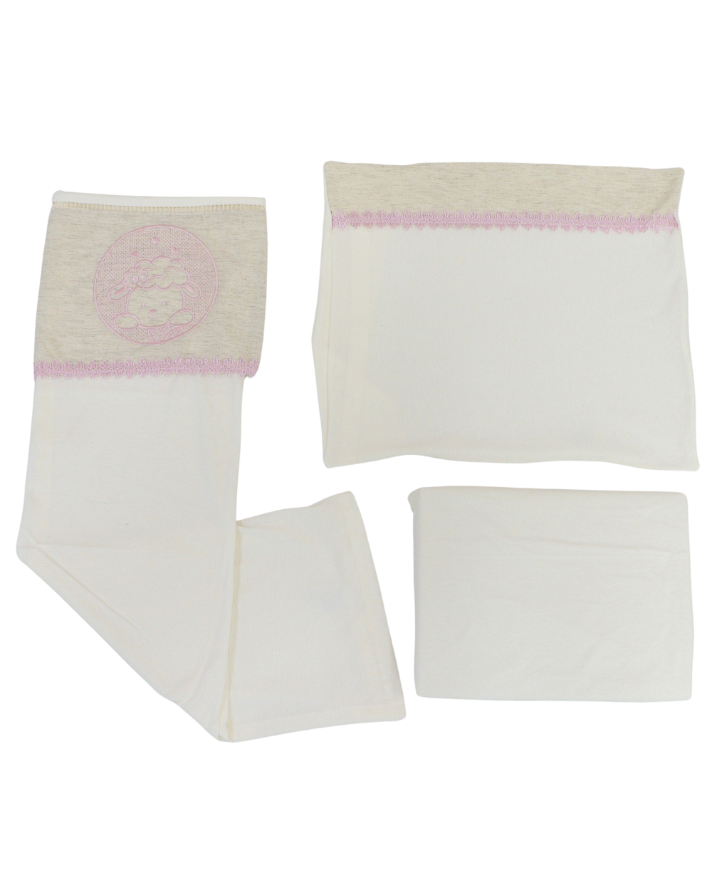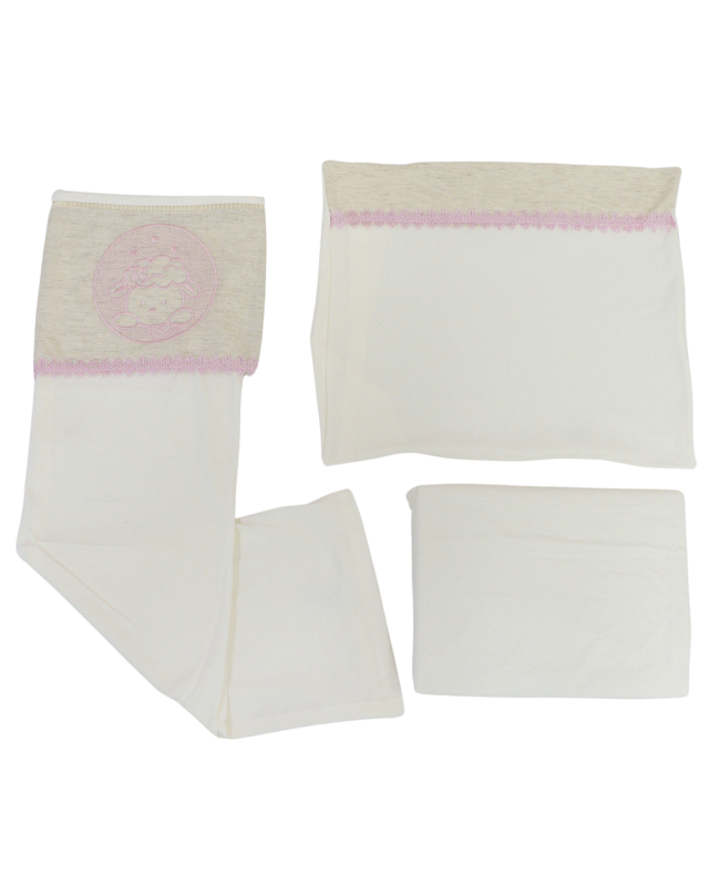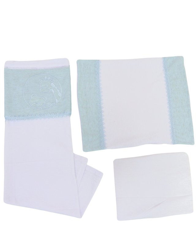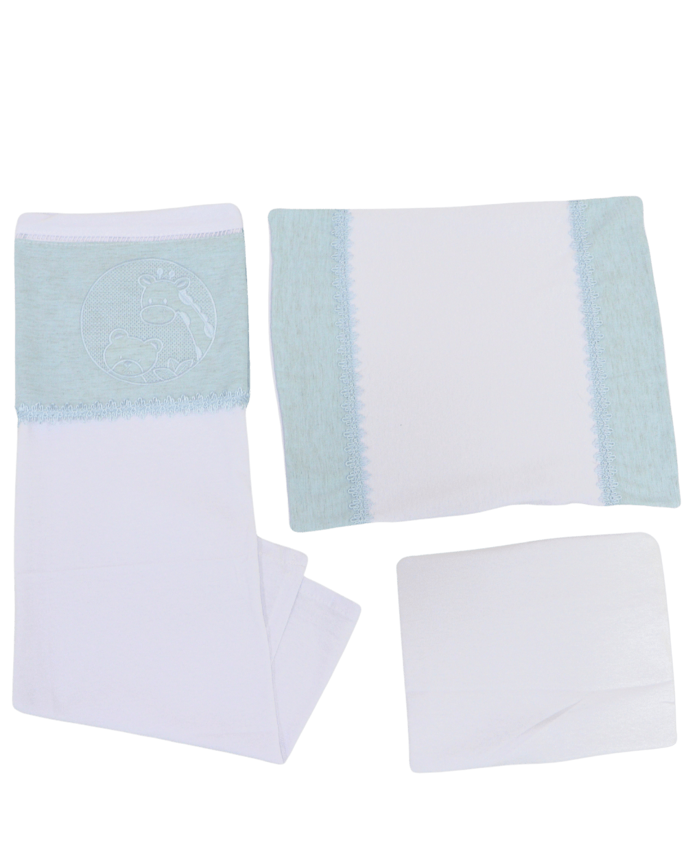 JOGO DE LENÇOL DE BERÇO CRESCERE FELICE COM DETALHES BORDADO. CONTÉM 3 PEÇAS