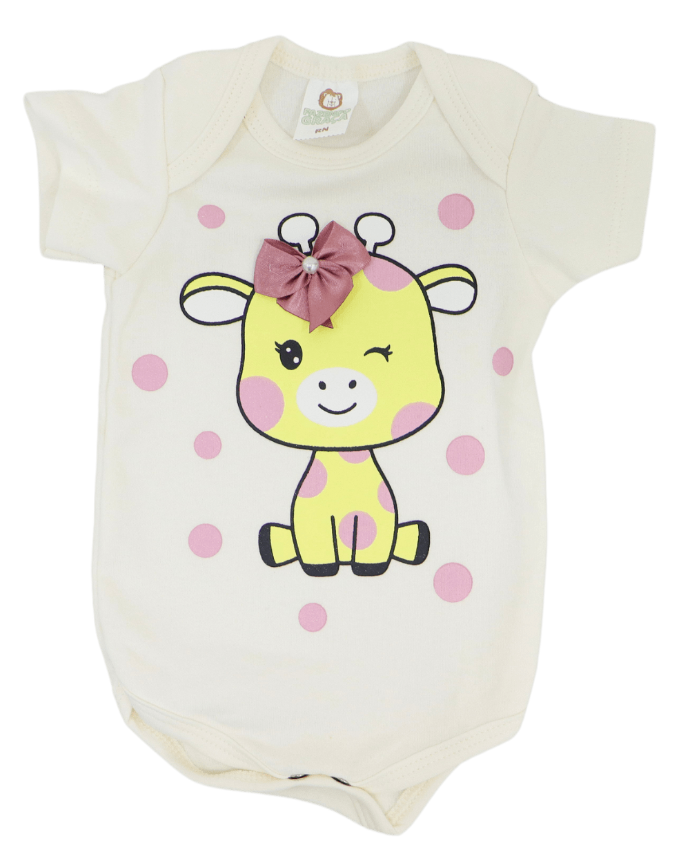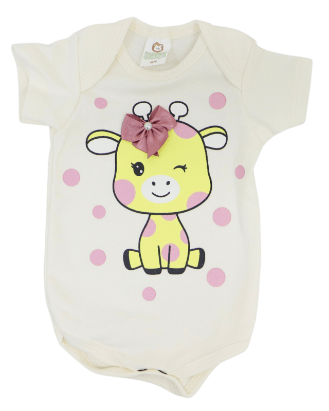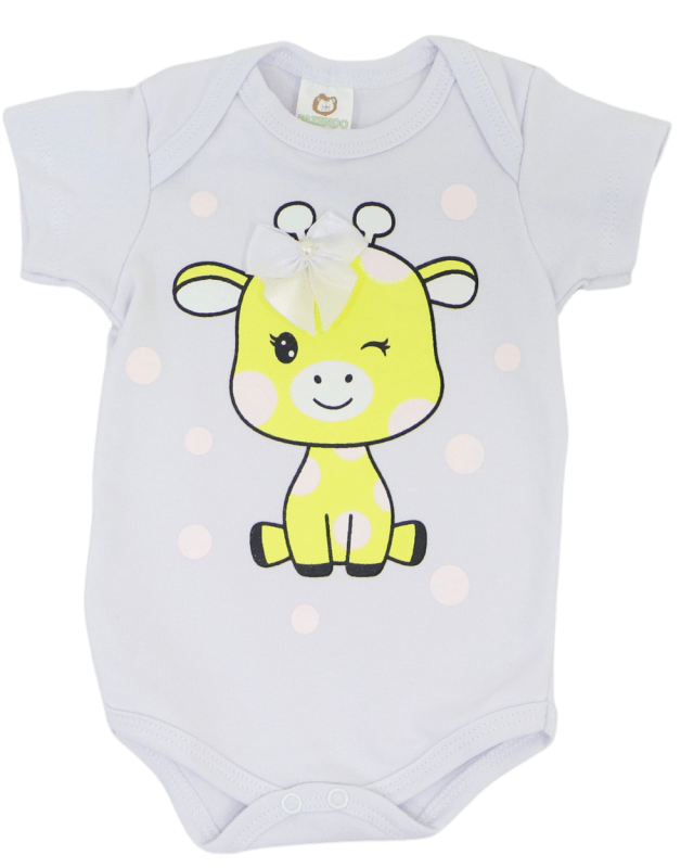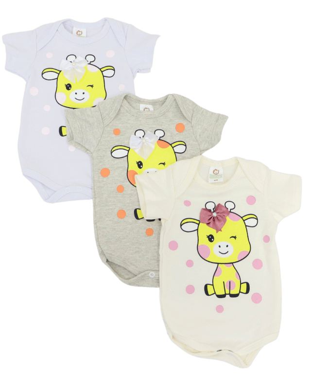 Kit de Body manga curta, Fazendo Graça com 3 peças, modelinho em suedine, estampado com fechamento por botões entre as pernas.