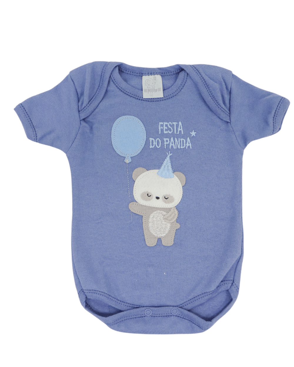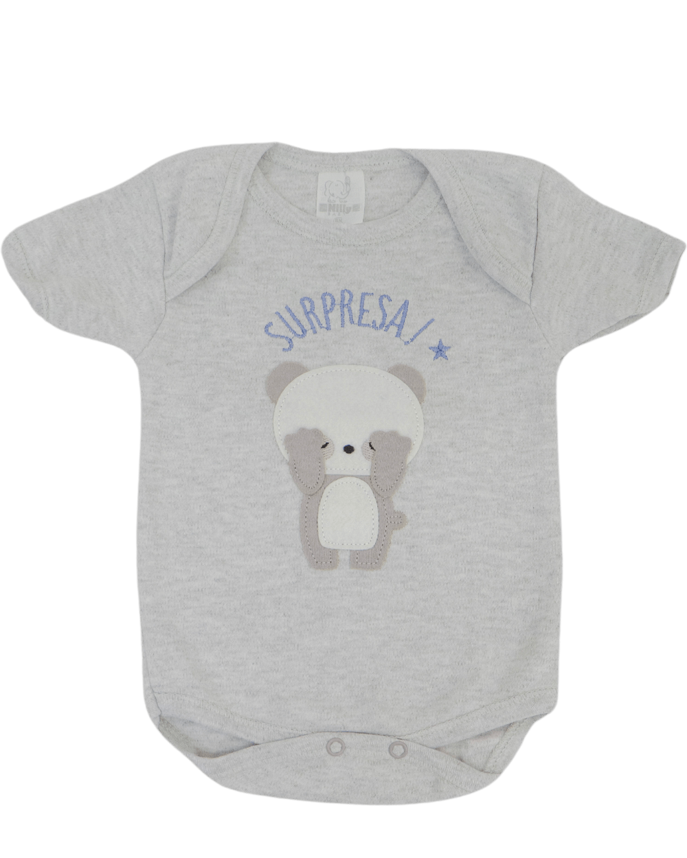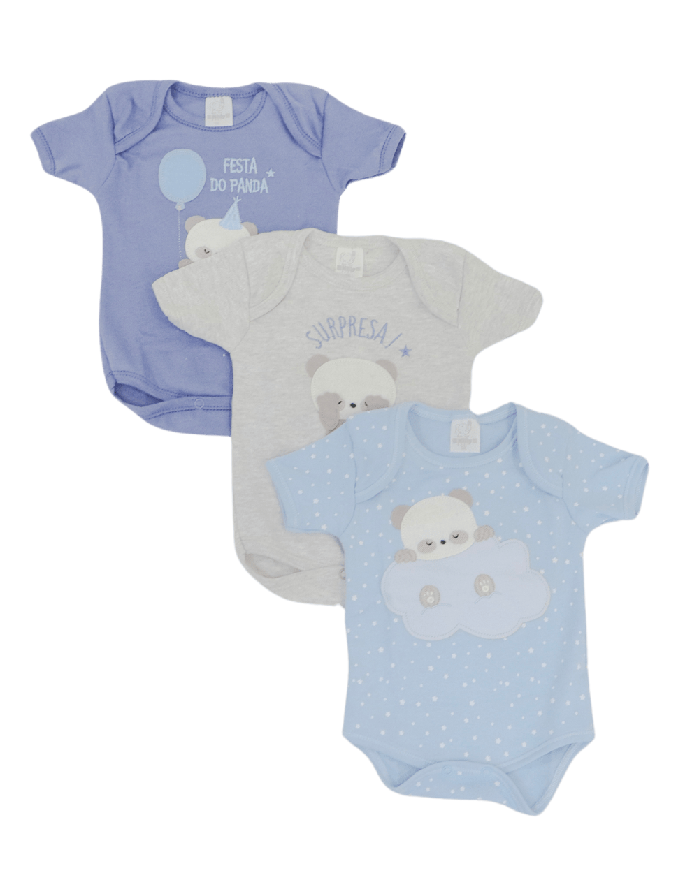 Kit de Body manga curta, Nilly Baby com 3 peças, modelinho em suedine, bordado com fechamento por botões entre as pernas.