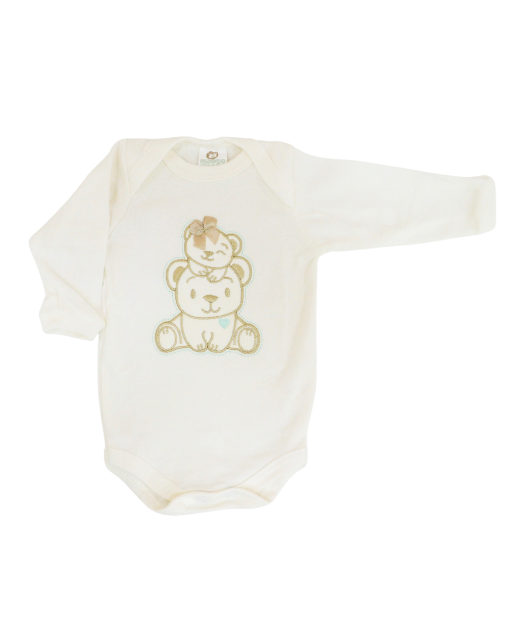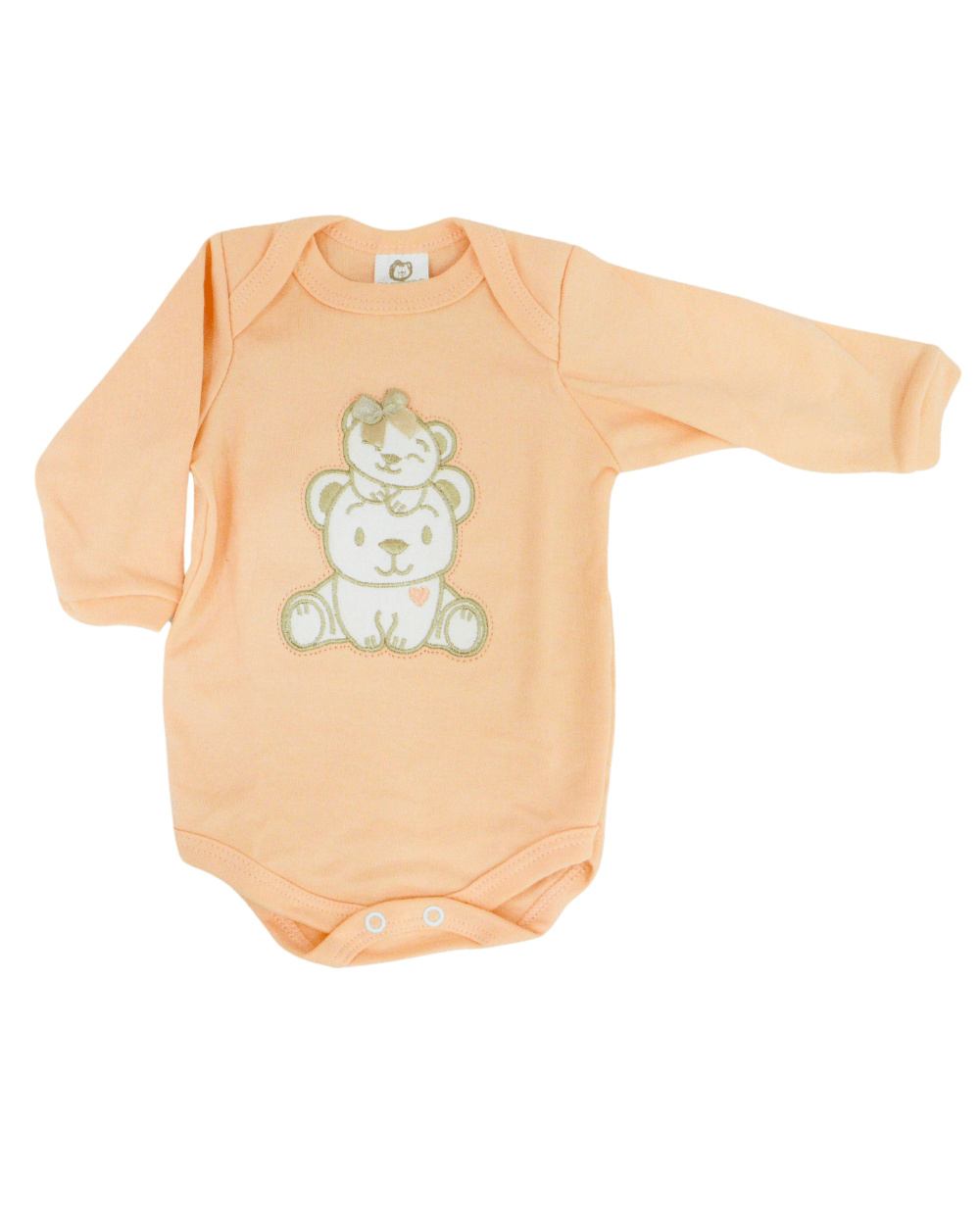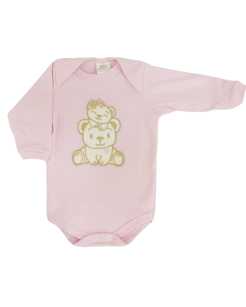 Body manga longa, modelinho em suedine, com fechamento por botões entre as pernas.