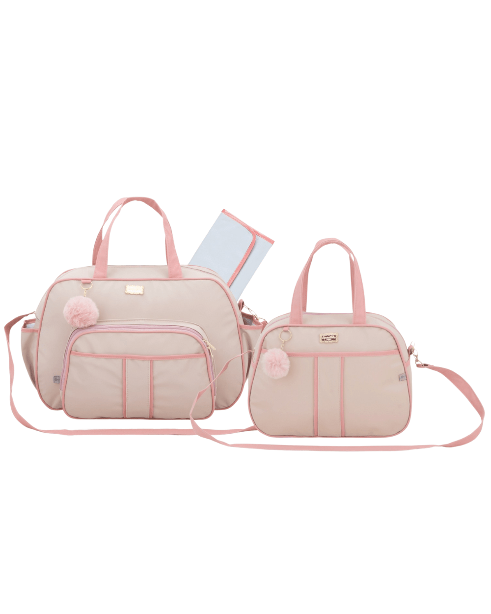 Kit bolsa maternidade Contém: 1 Bolsa grande com 1 Bolso Frontal; 1 Frasqueira com 1 Bolso Frontal; 1 trocador.