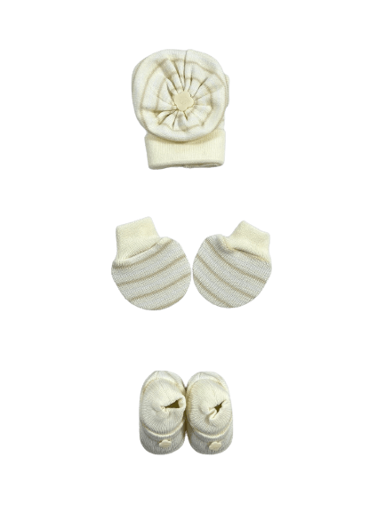 Contém: 1 par de luvas; 1 par de sapatos; 1 touca.