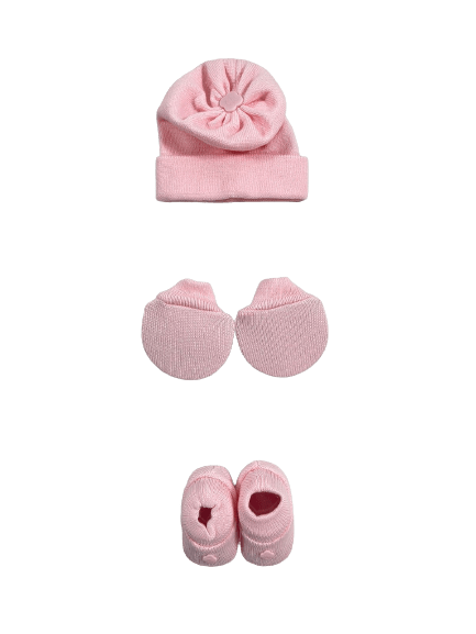 Contém: 1 par de luvas; 1 par de sapatos; 1 touca.