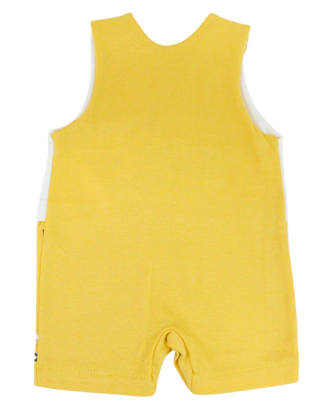 Macacão regata banho de sol modelo com bordado sofisticado garantindo o conforto e estilo ao bebê, fechamento em botões entre as penas.