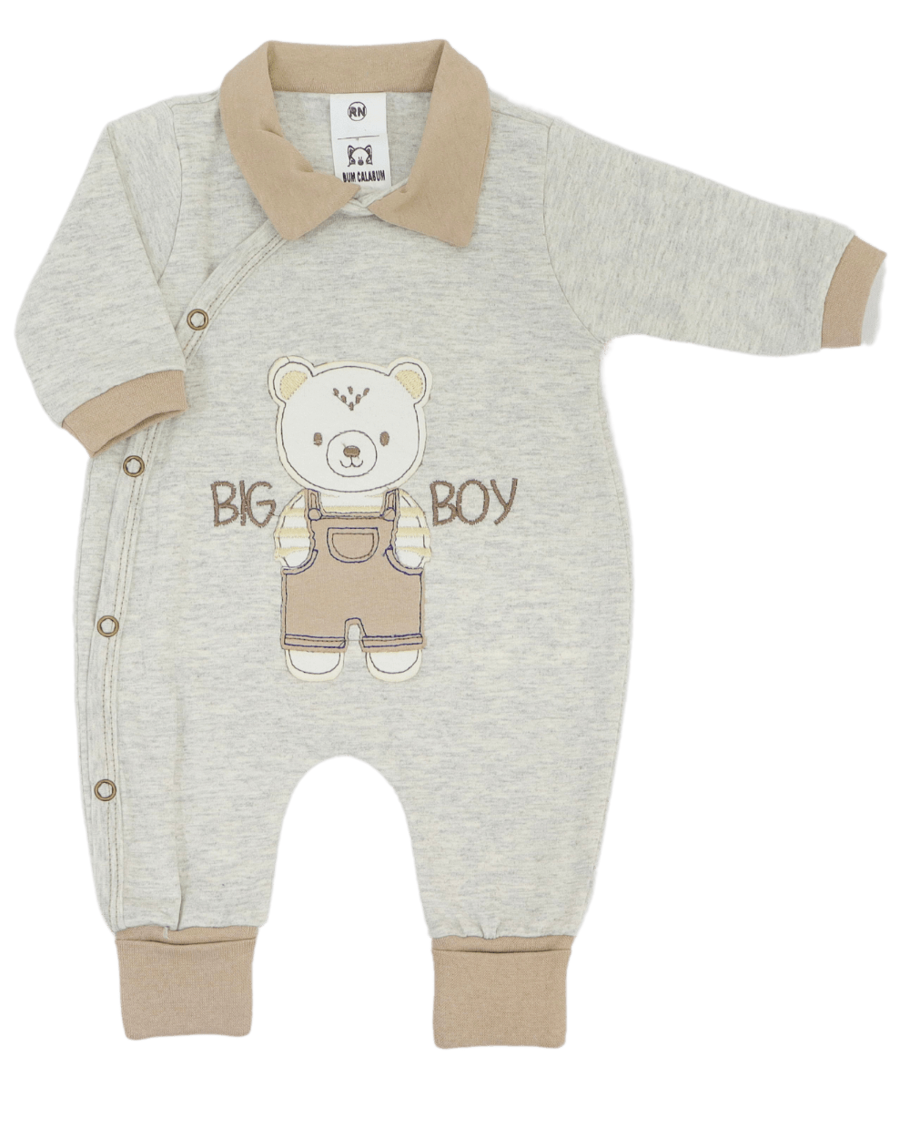 Macacão longo Bum Calabum modelo sofisticado com gola fechamento por botões, modelo bordado e com pé reversível garantindo o conforto e estilo ao bebê.