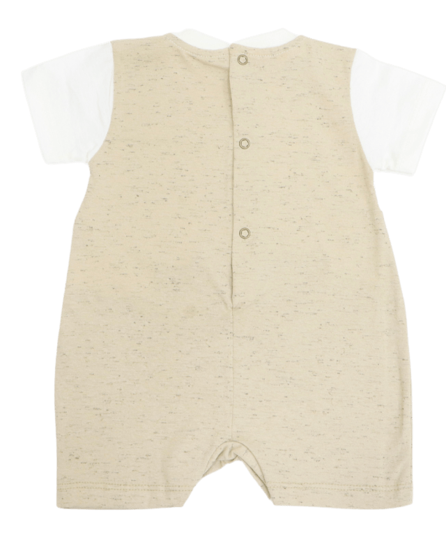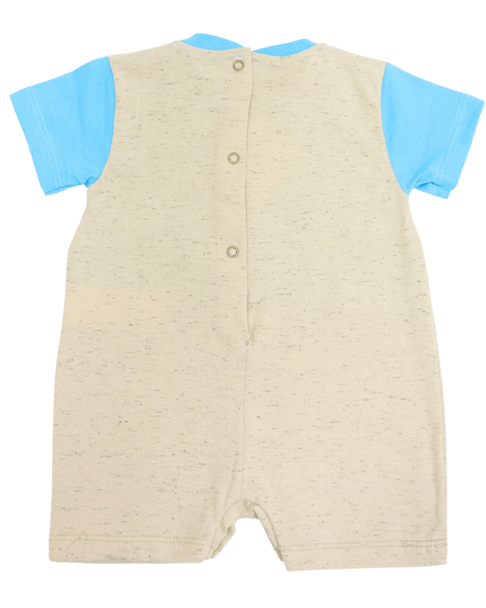 Macacão banho de sol curto, malha, abotoamento nas costas modelo liso com bordado no peito.