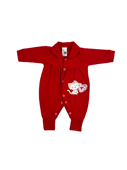 Macacão longo liso, malha, abotoamento frontal e entre as pernas. Bordado no peito.