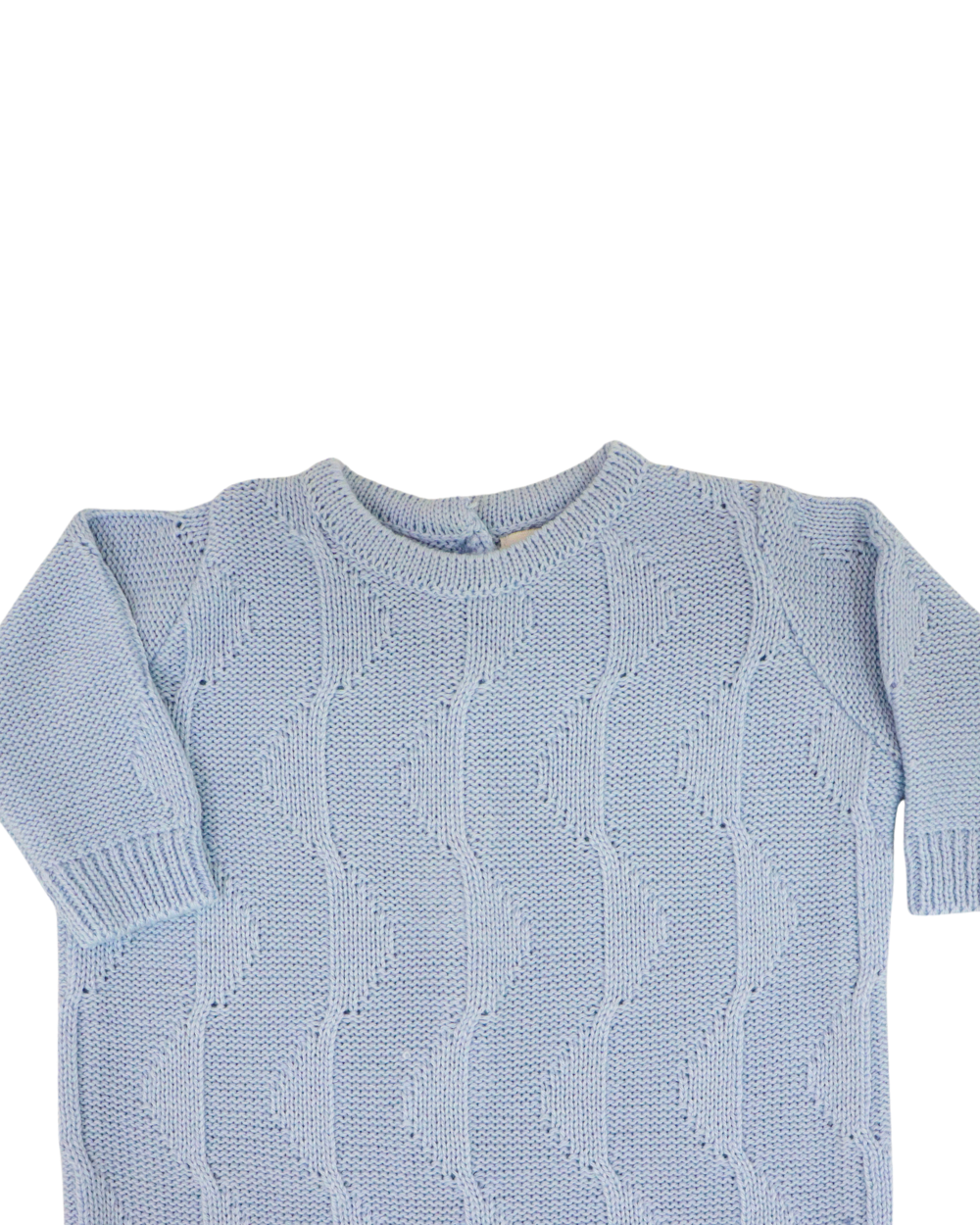 Macacão longo modelo sofisticado com gola redonda garantindo o conforto e estilo ao bebê, abotoamento entre as pernas e nas costas.