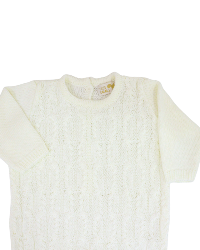 Macacão longo modelo sofisticado com gola redonda garantindo o conforto e estilo ao bebê, abotoamento entre as pernas e nas costas.