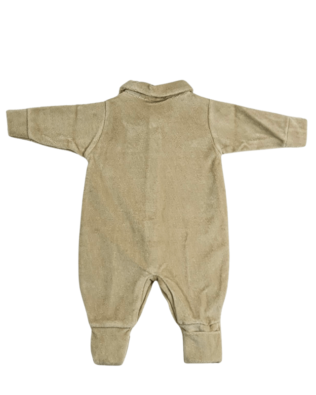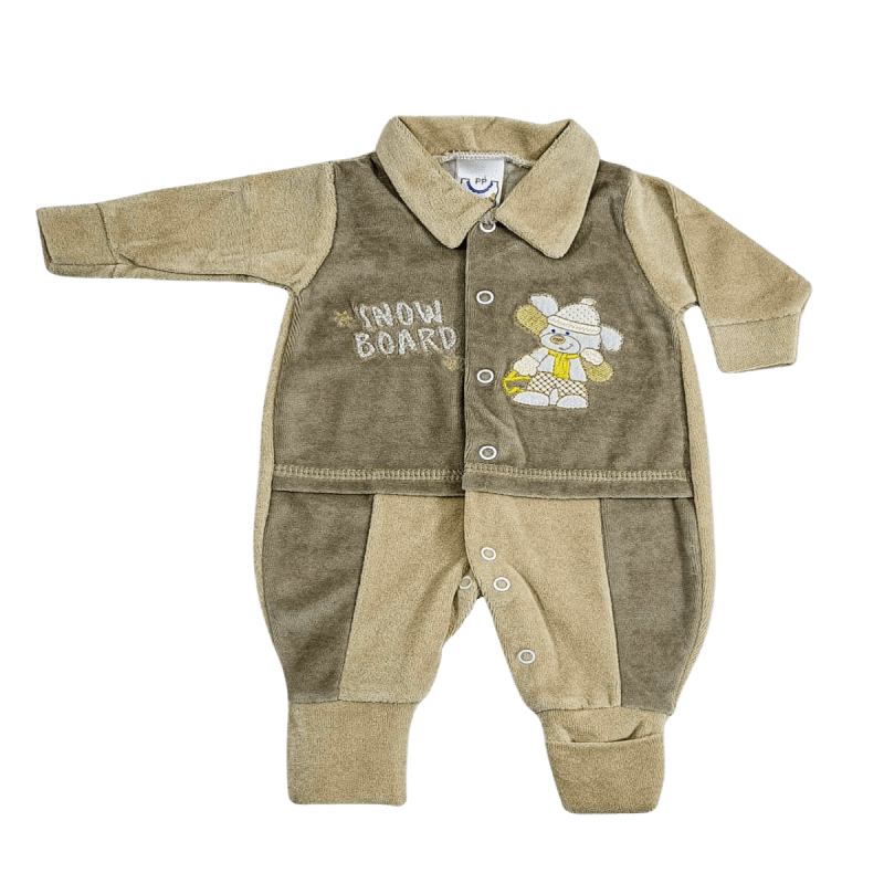 Macacão de Plush longo. Confeccionado em tecido de pelinhos super macio,bordado no peito, gola polo e detalhe vira pé.