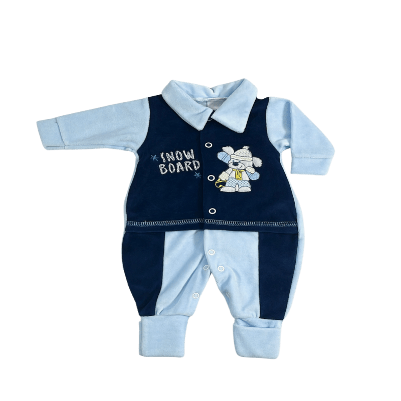 Macacão de Plush longo. Confeccionado em tecido de pelinhos super macio,bordado no peito, gola polo e detalhe vira pé.