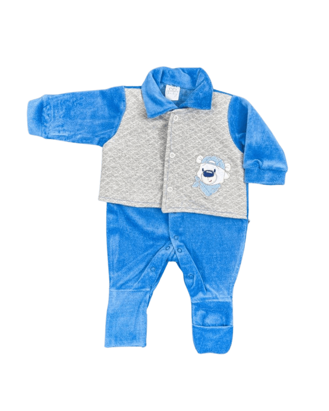 Macacão masculino de plush Bloomys com bordado no peito disponivel em duas lindas cores, longo e super quentinho, modelo vira pé.
