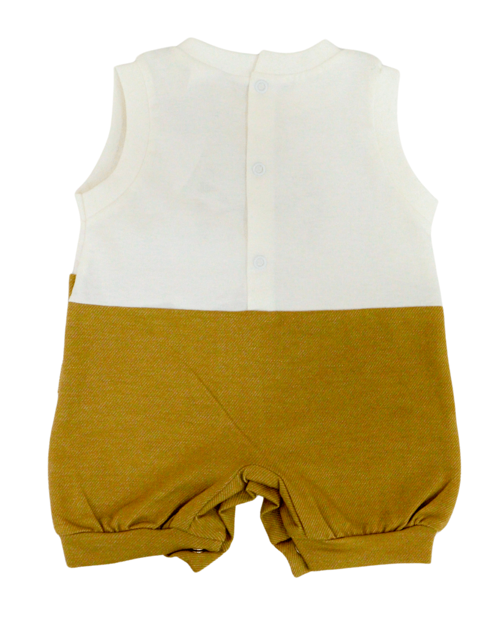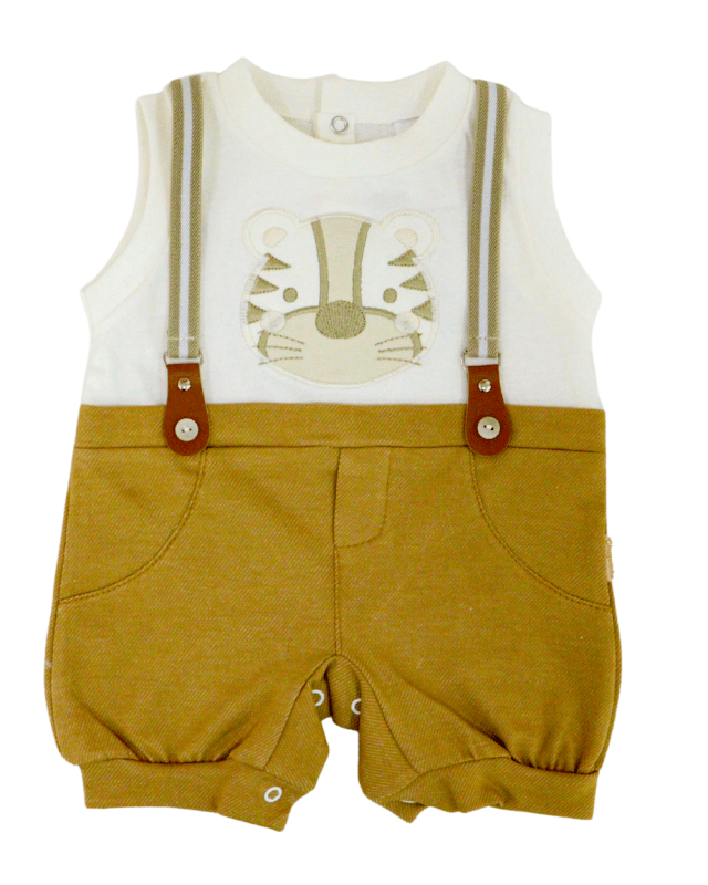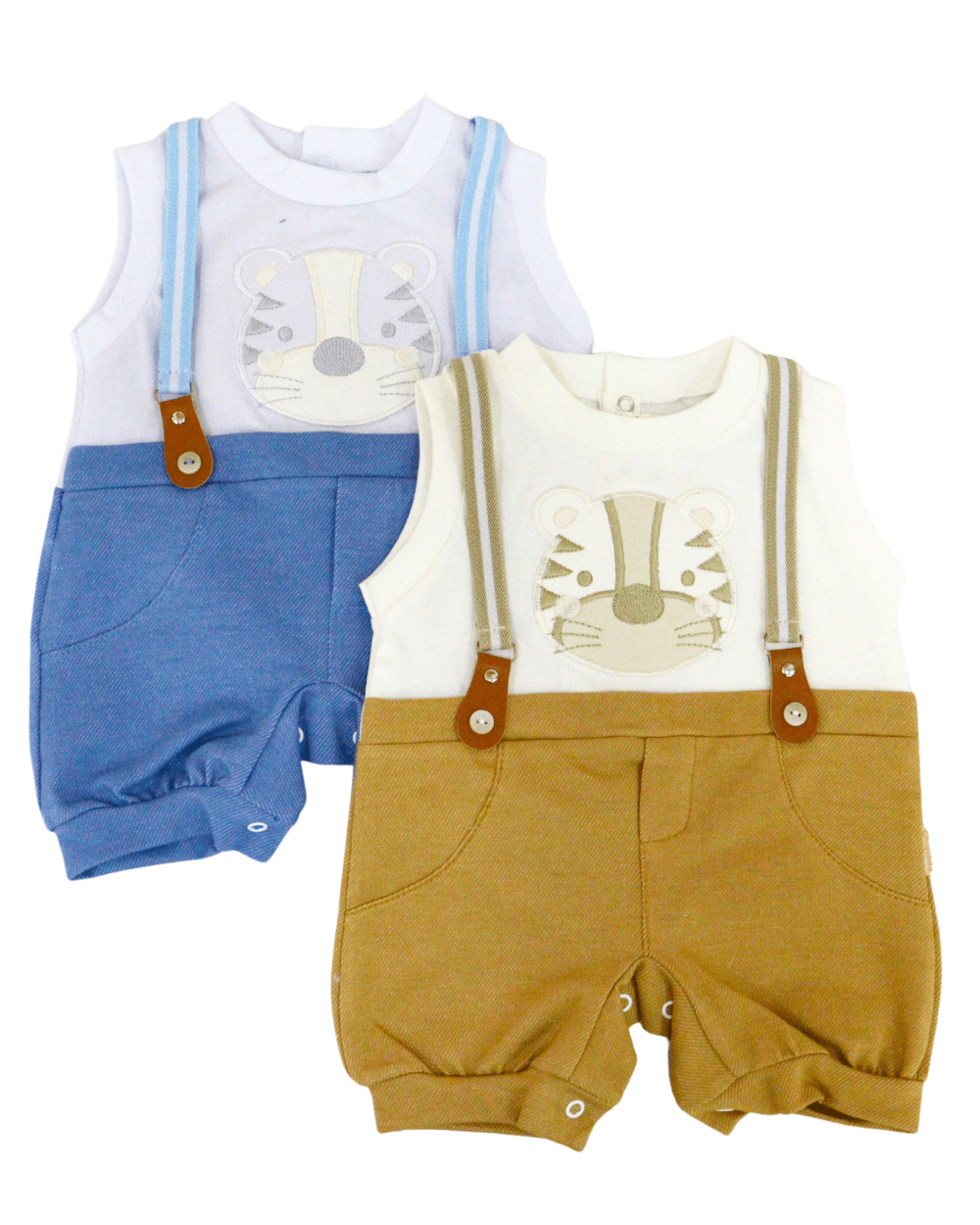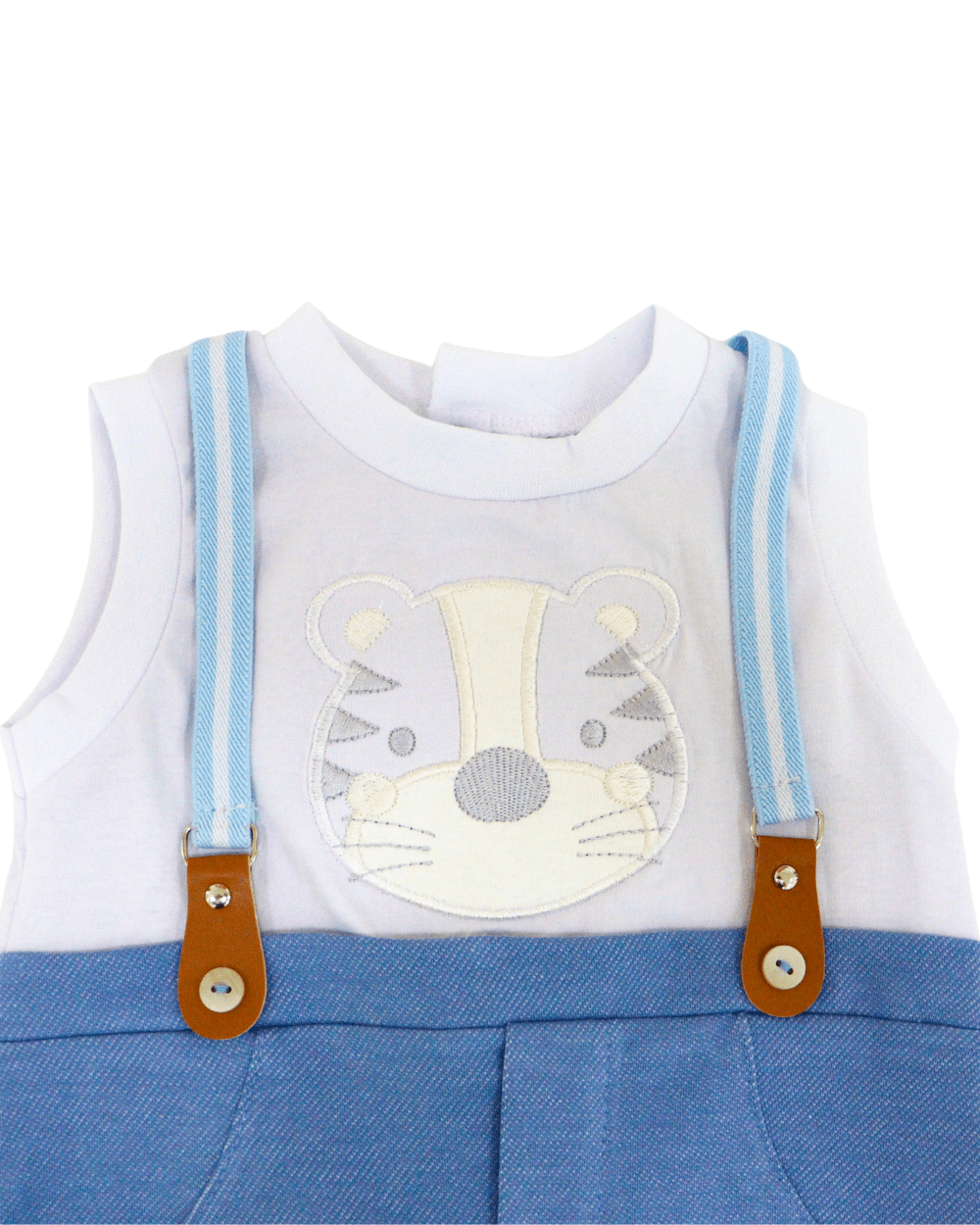 Macacão regata Chuquinha modelo com bordado e suspensório fake sofisticado garantindo o conforto e estilo ao bebê, fechamento em botões entre as penas.