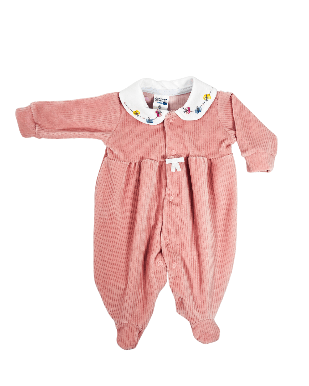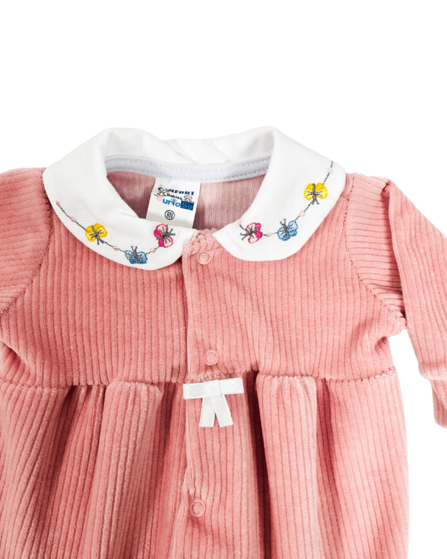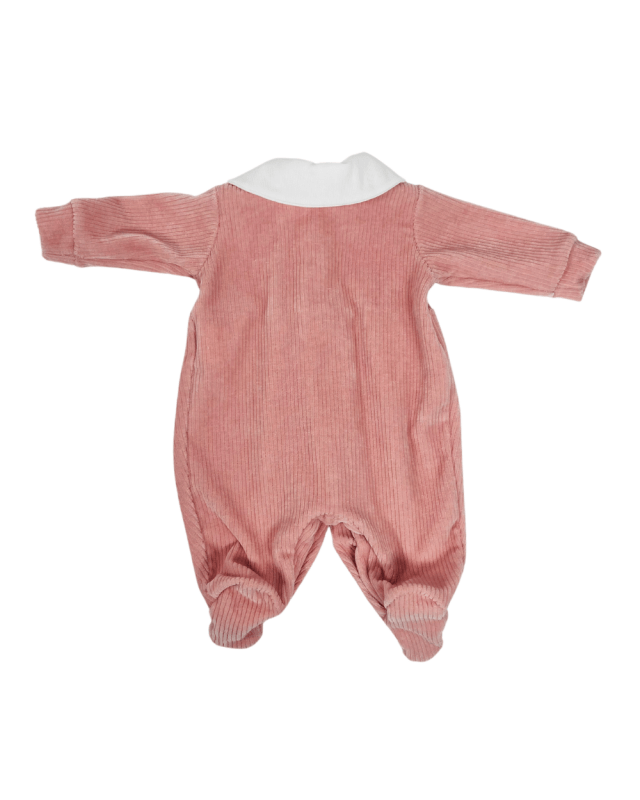 Macacão Plush Curioso, modelo longo com gola bordada e canelado e fechamentopor botões, super quentinho e confortável. Macio ao toque. Cor: Rosê Composição: 62% Poliéster 36% Algodão 02% Elastano