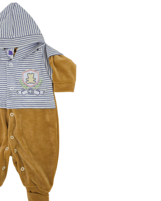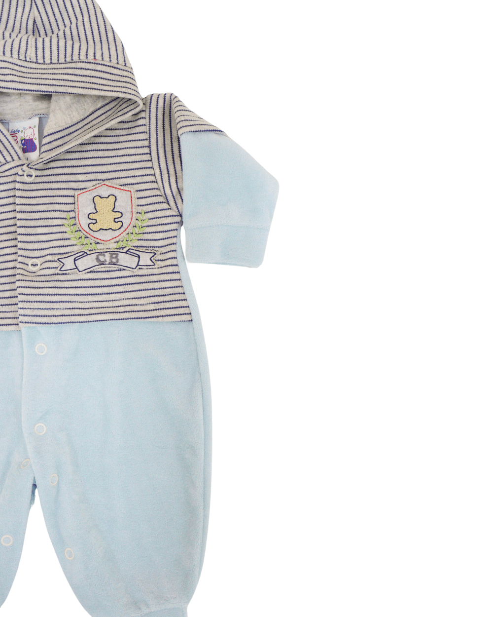 Macacão longo em plush modelo vira pé, bordado sofisticado garantindo o conforto e estilo ao bebê, fechamento por botões.