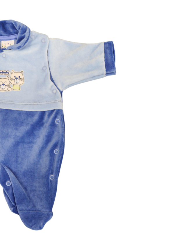 Macacão longo em plush modelo, bordado sofisticado garantindo o conforto e estilo ao bebê, fechamento por botões.