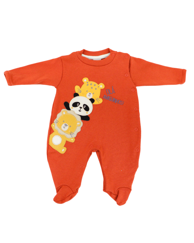 Macacão longo Nilly em suedine, bordado sofisticado garantindo o conforto e estilo ao bebê, fechamento por botões.