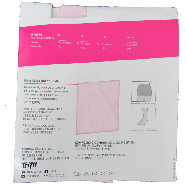 MEIA CALÇA BALLET TRIFIL REF:6990 TAM:P/G ROSA FIO 40