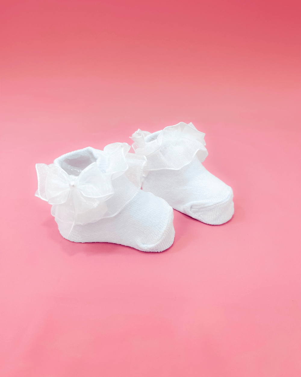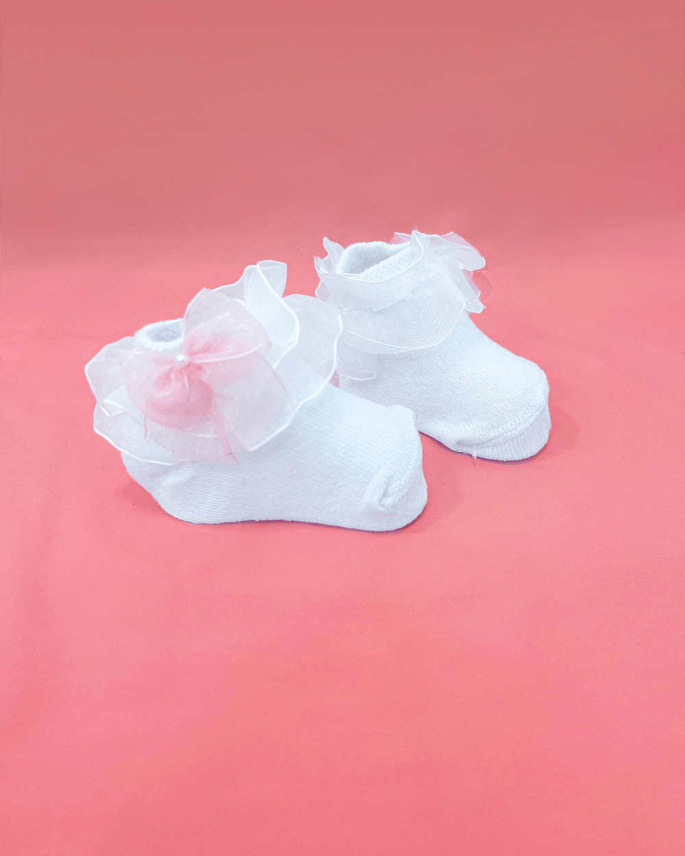 MEIA COM ORGANZA E LAÇO APLICADO.