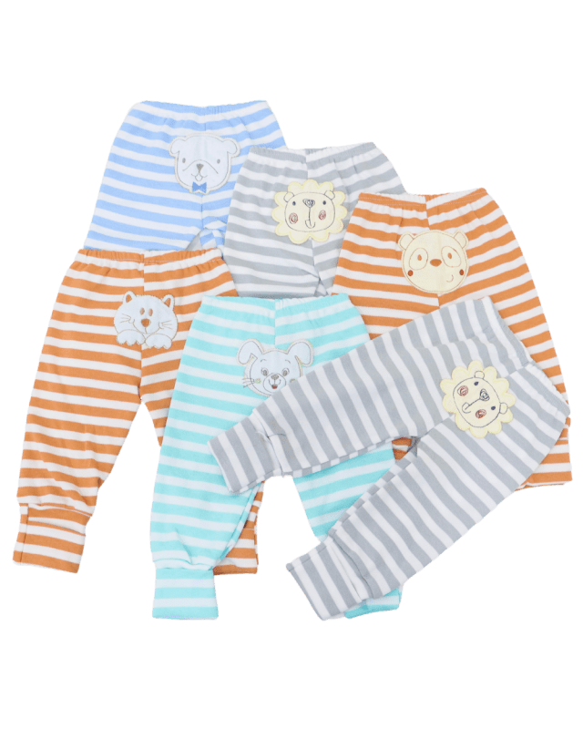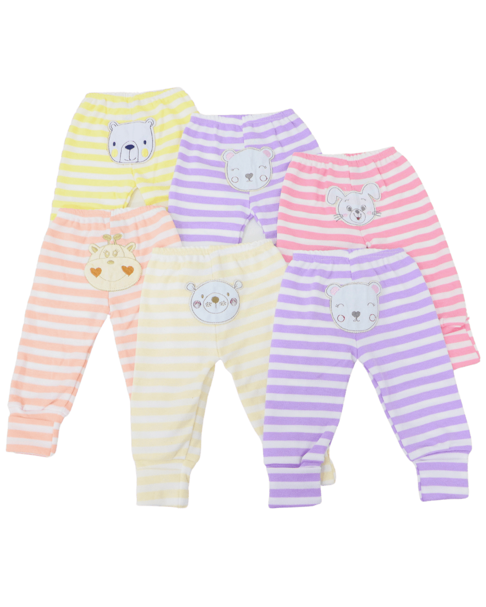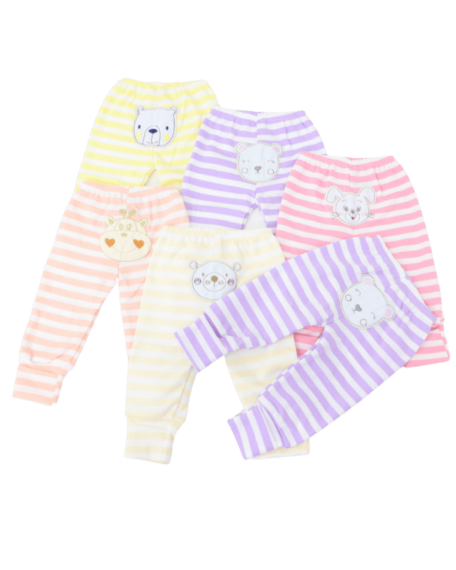 Mijão listrado Luana Baby pacote com 6 peças sortidas, modelo vira pé com bordado na parte de trás e cintura elástica para maior conforto do bebê.