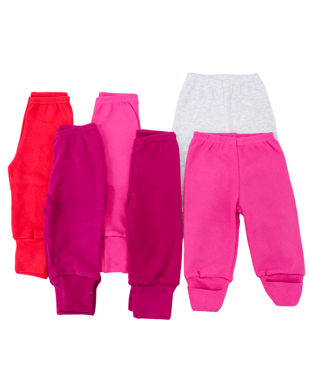 Mijão liso Luana Baby pacote com 6 peças sortidas, modelo vira pé com cintura elástica para maior conforto do bebê.